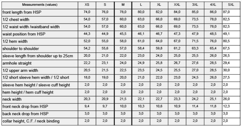 Velikostní tabulka: